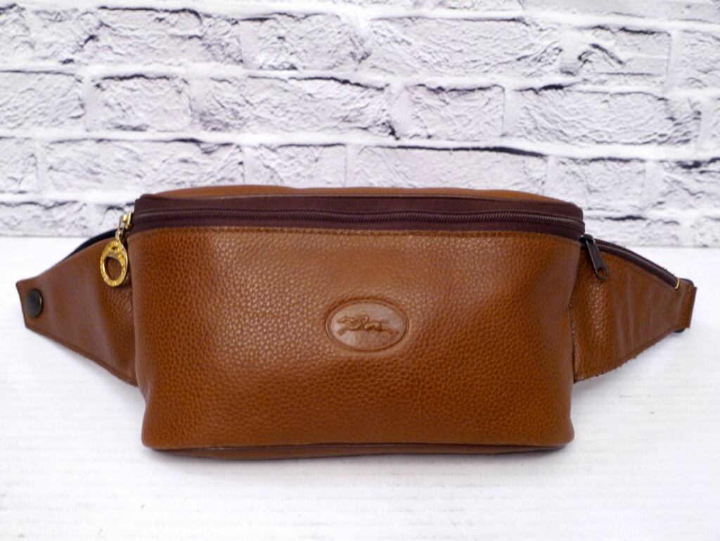 1970s Vintage◆LONGCHAMP PARIS ロンシャン ユニセックス レザー ボディバッグ バムバッグ クロス ボディ ベルト バッグ 茶◆ 希少なヴィンテージライン♪