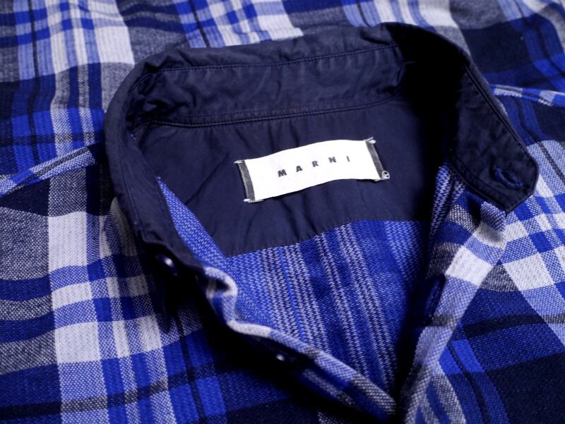 ◆MARNI マルニ メンズ 異素材MIX ハイブリッド チェック 長袖 シャツ44◆ 可愛らしさと上品さが絶妙にMIXされたMARNIのメンズらしいモデル