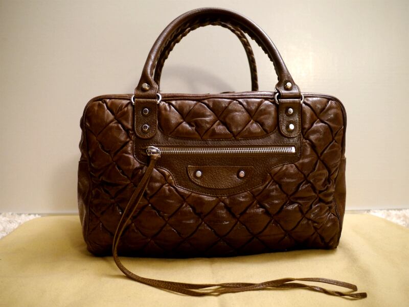 レア22万◆BALENCIAGA バレンシアガ ザ・マトラッセ ミニボストン型 レザー ハンド バッグ 茶◆ 定番エディターズラインから希少なマトラッセ♪