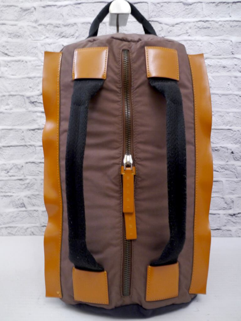 レア◆MARNI マルニ 大容量 男女可 2way ナイロンxレザー ボストンバッグxバックパック リュック 茶◆ 大容量の希少なマルチポケットモデル