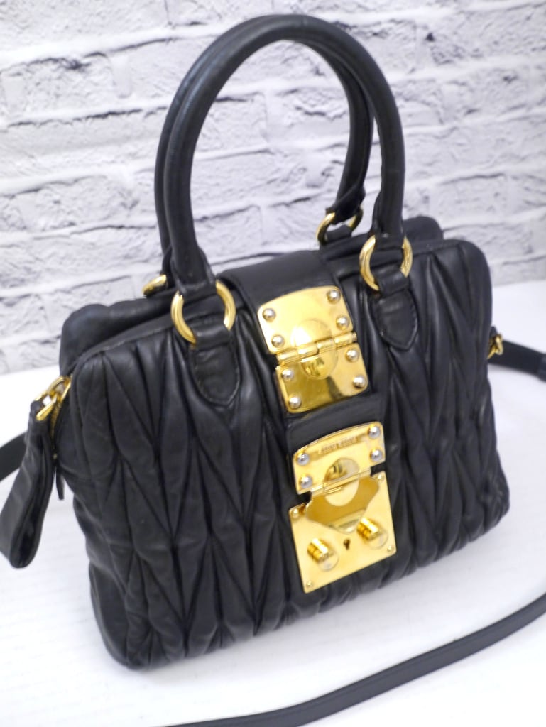 ◆miu miu ミュウミュウ マトラッセ ハンドショルダー 2way クロスボディ ギャザーデザイン レザー バッグ 黒◆ 使い勝手の良い2wayモデル
