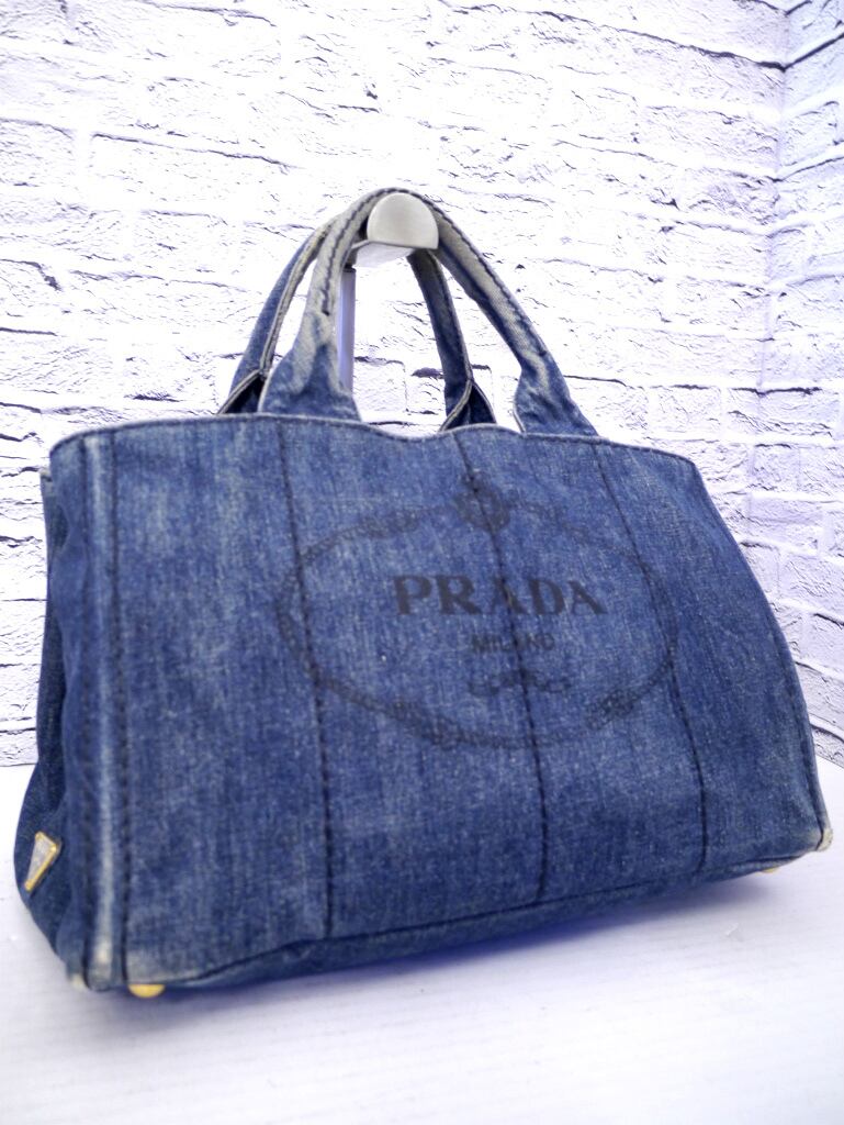PRADA(プラダ) CANAPA(カナパ) ロゴデザイン サイド開閉 デニム地 トート ハンド バッグです。