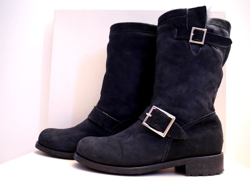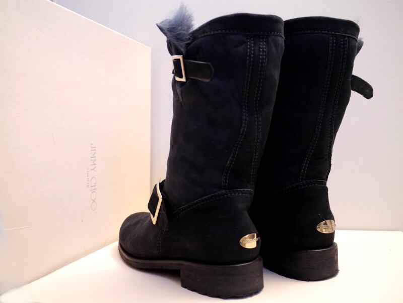 13万★JIMMY CHOO ジミーチュウ レディース 内ボア仕様 スエードレザー バイカー エンジニア ブーツ 黒 36.5★ 真冬も大活躍のボアブーツ♪