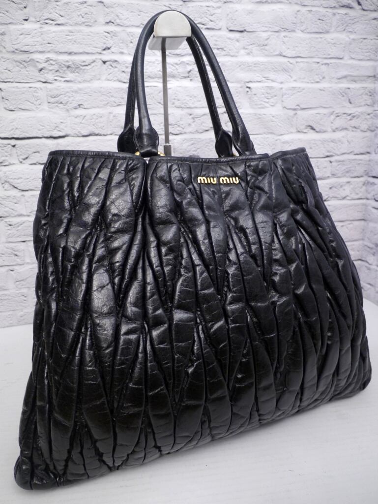 ◆miu miu ミュウミュウ MATELASSE マトラッセ A4対応 ビジネス可 パテントレザー トート バッグ 黒◆ クラシックな雰囲気が可愛らしい♪