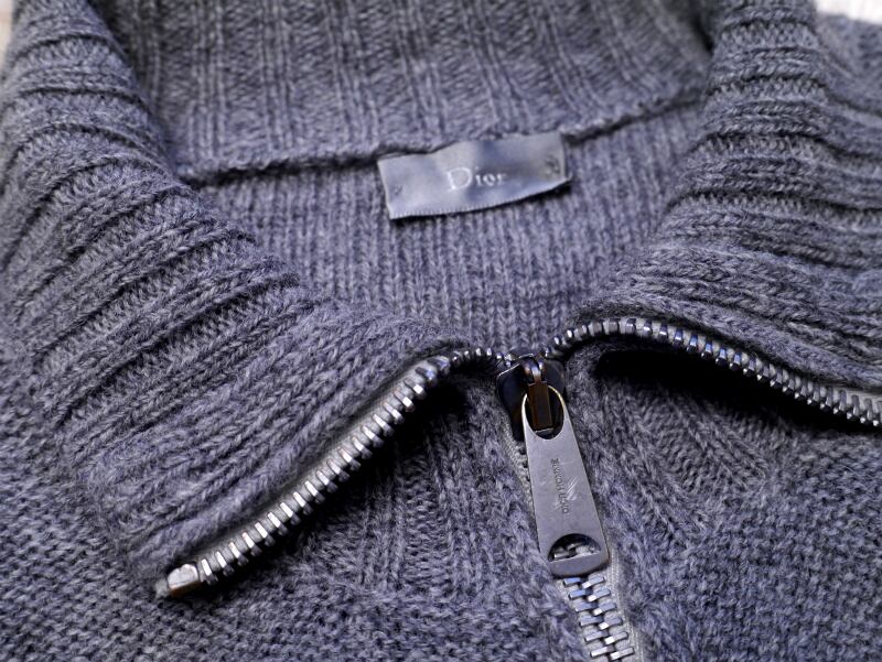 レア◆DiorHomme ディオールオム プリーツデザイン ドライバーズ ニット ブルゾン S灰◆ 3シーズン着回しに大活躍のジップデザインニット♪