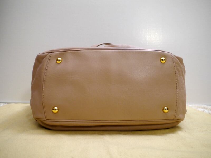 miumiu定番の可愛らしいギャザーデザインですが、ピンクベージュの純粋なトートモデルは中古市場ではほとんど出回らずお探しであった方も多いかと思います。