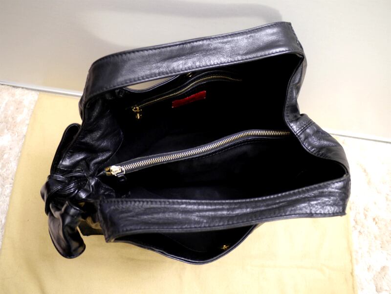 ◆VALENTINO GARAVANI ヴァレンティノ サイドリボンデザイン レザー トート ワンショルダー バッグ 黒◆ ファーストラインの圧巻クオリティ