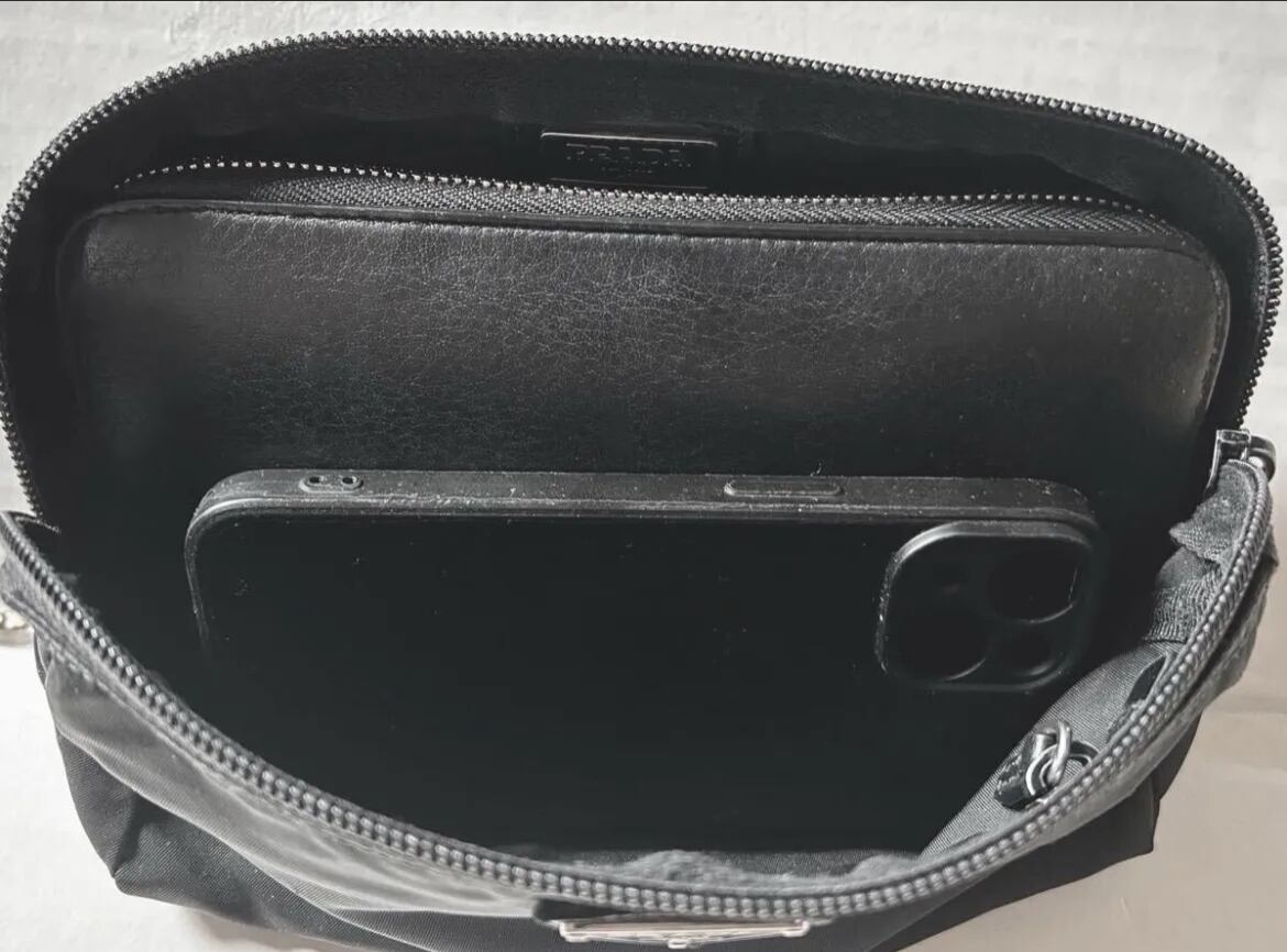 ◆PRADA プラダ テスート ナイロンxレザー クロスボディ ショルダー カメラ バッグ ポーチ ポシェット 黒◆クロスボディ仕様の定番モデル♪