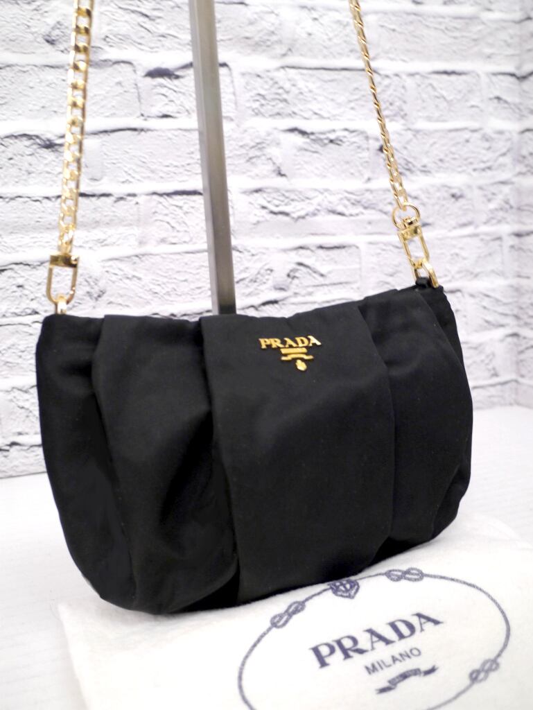 PRADA(プラダ) ギャザーデザイン テスート ナイロン チェーンストラップ クロスボディ ショルダーバッグ(ポーチ)です。
