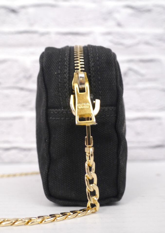 ◆PRADA プラダ CANAPA カナパ ビッグロゴ クロスボディ チェーンストラップ ミニ ショルダー バッグ カメラ バッグ ポーチ ポシェット 黒
