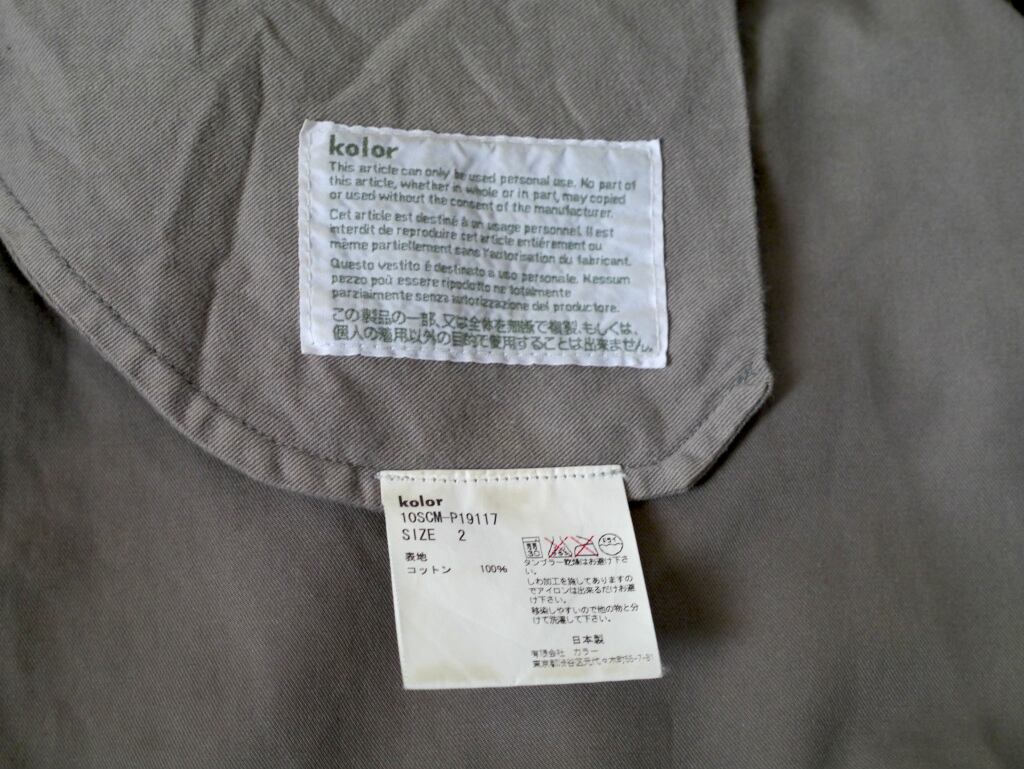 Kolorの代名詞と言っても過言ではないアイテムですが、Y’sやコムデギャルソンにて経験を積んだデザイナーのアイテムらしく、シンプルながらも主張のあるデザインで流行問わずに長くに渡ってご着用頂けます。