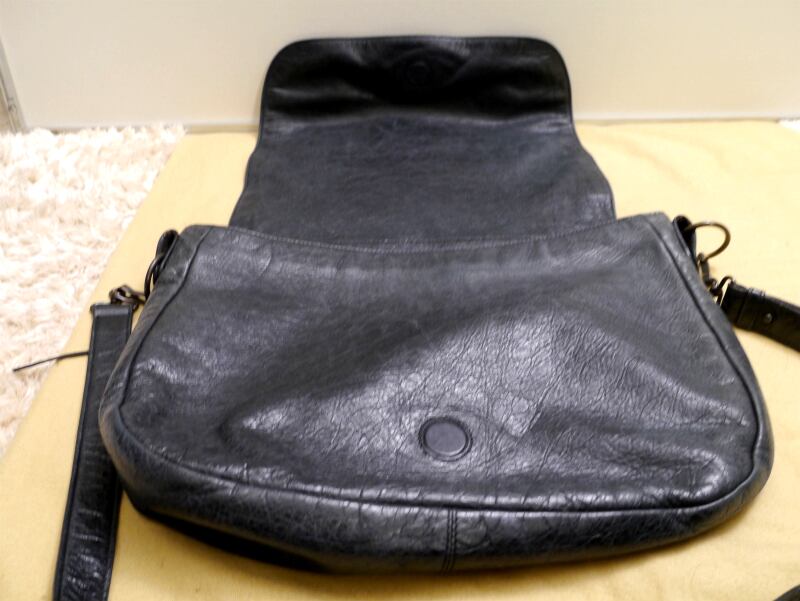 美品16万◆BALENCIAGA バレンシアガ NEO FOLK ネオフォルク 男女可 レザー メッセンジャー ショルダー バッグ 黒◆ 独特な形状の希少ライン