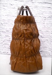 ◆PRADA プラダ BN1232 GAUFRE ギャザーデザイン レザーxサフィアーノレザー ショッピング トート バッグ 茶◆ 使い勝手の良い大容量モデル