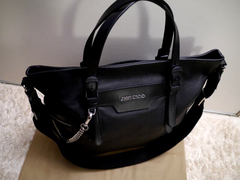 美品26万★JIMMY CHOO ジミーチュウ メンズ バイカー チェーンデザイン 2way レザー トート バッグ 黒★ 進化を遂げたメンズの超人気モデル