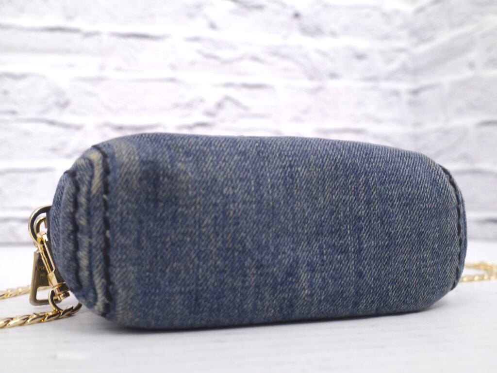 ◆PRADA プラダ CANAPA カナパ クロスボディ チェーンストラップ デニム ミニ ショルダー バッグ カメラ バッグ ポーチ 青x金◆ レアモデル